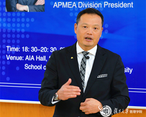 2015年4月8日晚,麦当劳中国首席执行官、大中华区区域总裁曾启山先生作客由复旦MBA主办的聚劲论坛,并发表了题为“在中国打造领先的事业和品牌”的演讲。曾启山先生将赴新加坡任麦当劳亚太区总裁前在中国的最后一次演讲献给了复旦管院的学生。