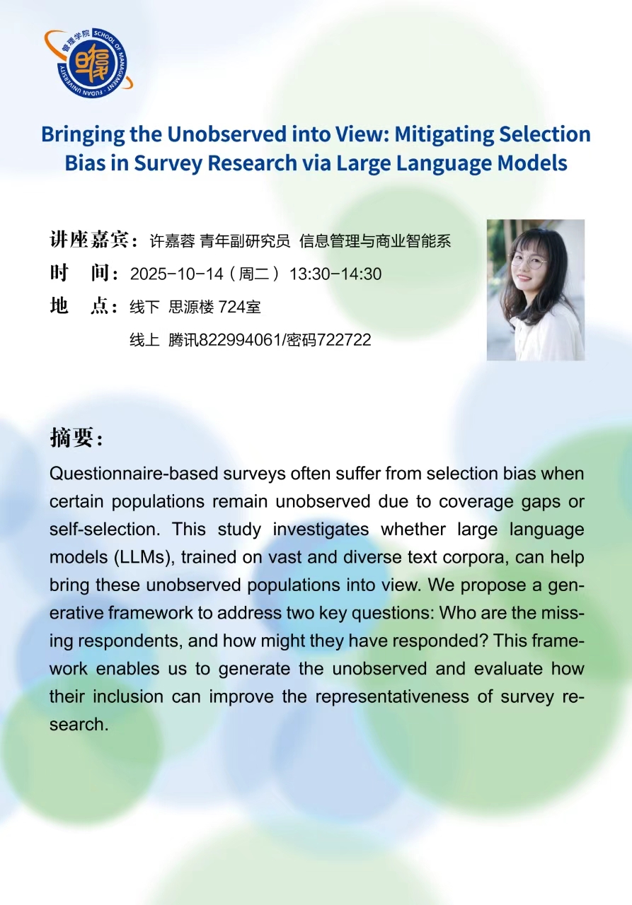 题目:Bringing the Unobserved into View: Mitigating Selection Bias in Survey Research via Large Language Models