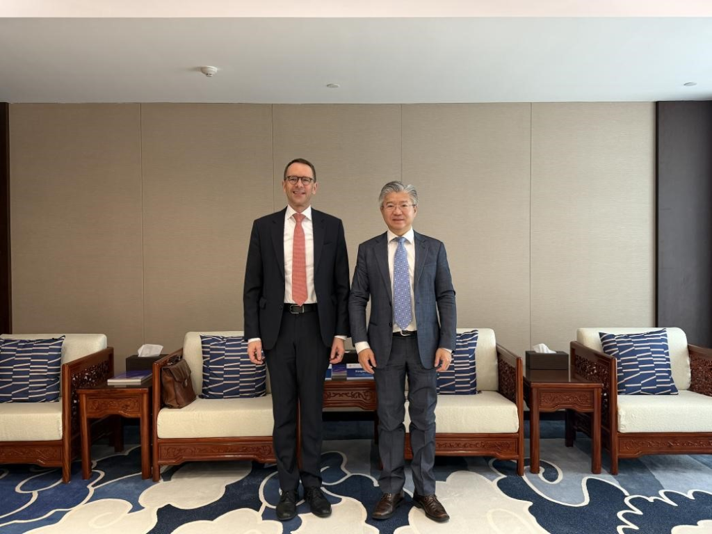 在随后的会谈中,陆雄文书记介绍了学院整体发展态势、战略建设成果与发展挑战,分享了学院国际化办学的最新进展,并对贺达博士及瓦克化学长期以来给予学院的大力支持表示感谢。贺达博士对学院的发展成就、战略定位以及在科创与国际化等领域的探索深表认同。双方围绕深化中德青年交流等议题深入交换意见,为未来进一步拓展合作奠定了坚实基础。