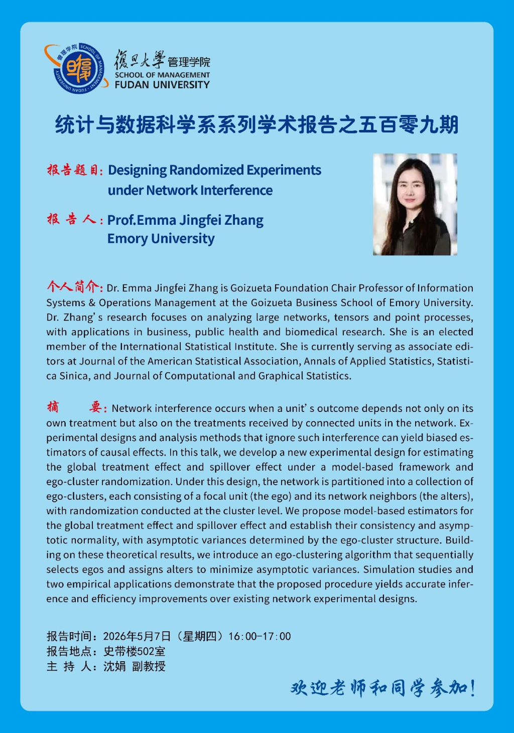 报 告 人:Prof. Emma Jingfei Zhang (张菁菲)Emory University